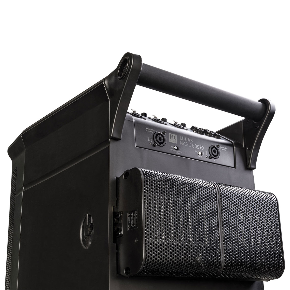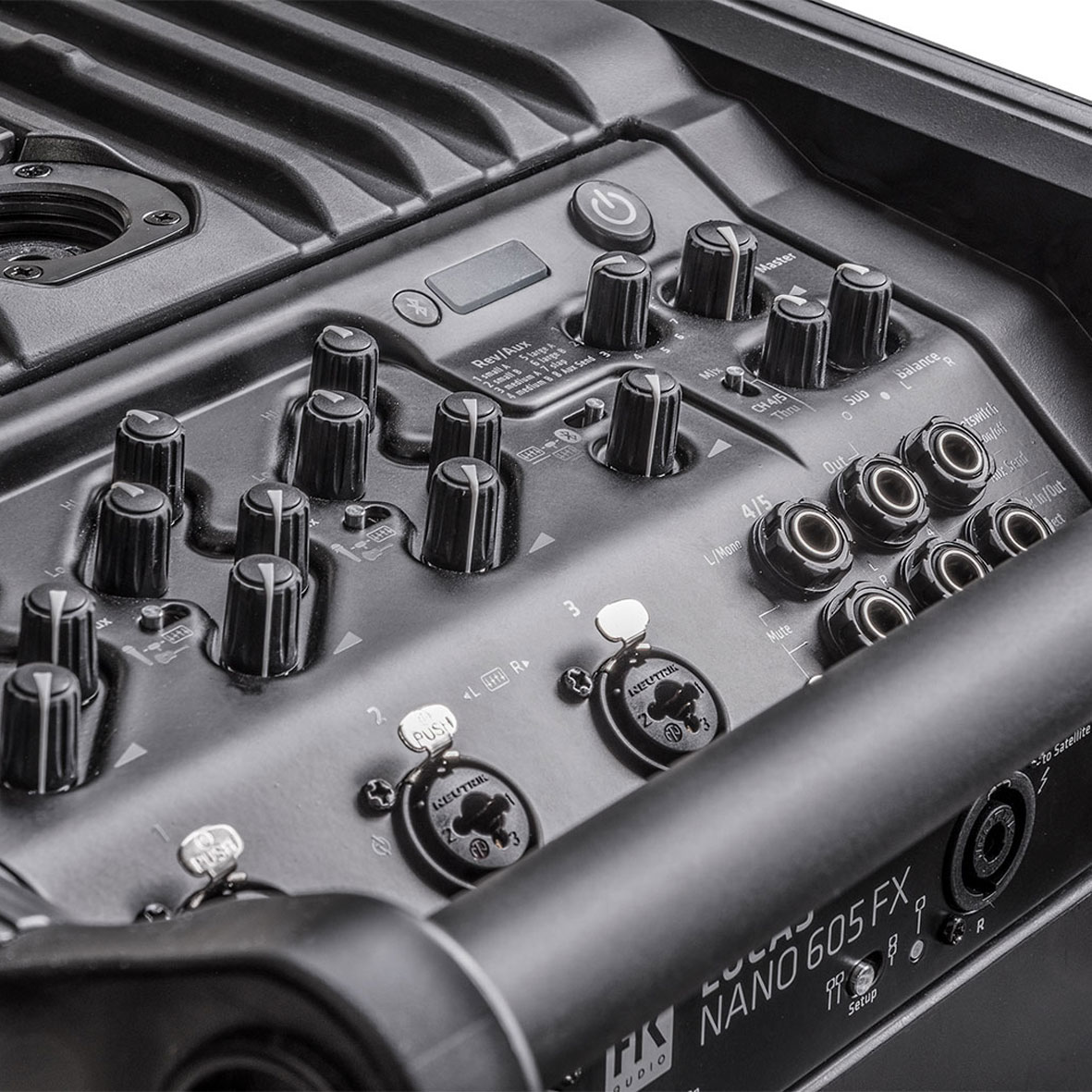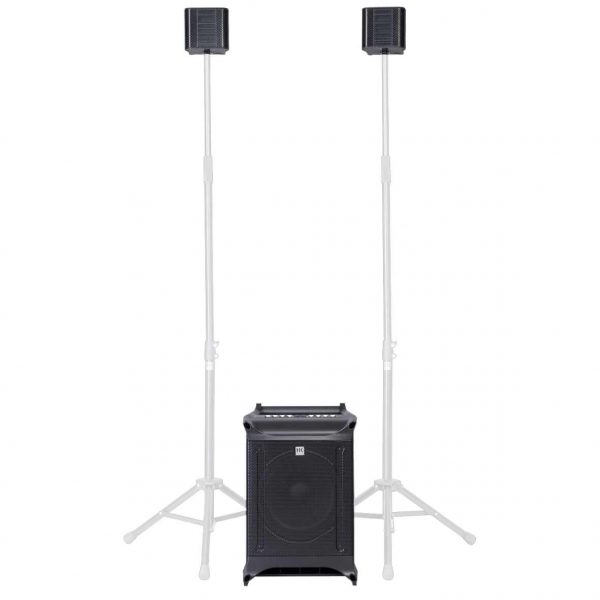 The LUCAS NANO 605 FX is an absolute all-rounder with five inputs, Bluetooth audio streaming and integrated reverb effects: Whether as a front PA for band performances in front of up to 120 people or as an MP3 party sound system, as an entertainer’s stereo PA or as an elegant mono solution for singer-songwriters, at home at live sports screenings or karaoke evenings, for working out in the gym or at a garden party with friends. The LUCAS NANO 605 FX consists of an active system subwoofer and two satellites that can be stowed in the subwoofer’s transport bay. A wide range of high-quality accessories, such as the wireless, height-adjustable S-CONNECT POLE LN mounting pole and a STEREO STAND ADD-ON from K&M, are available as options.